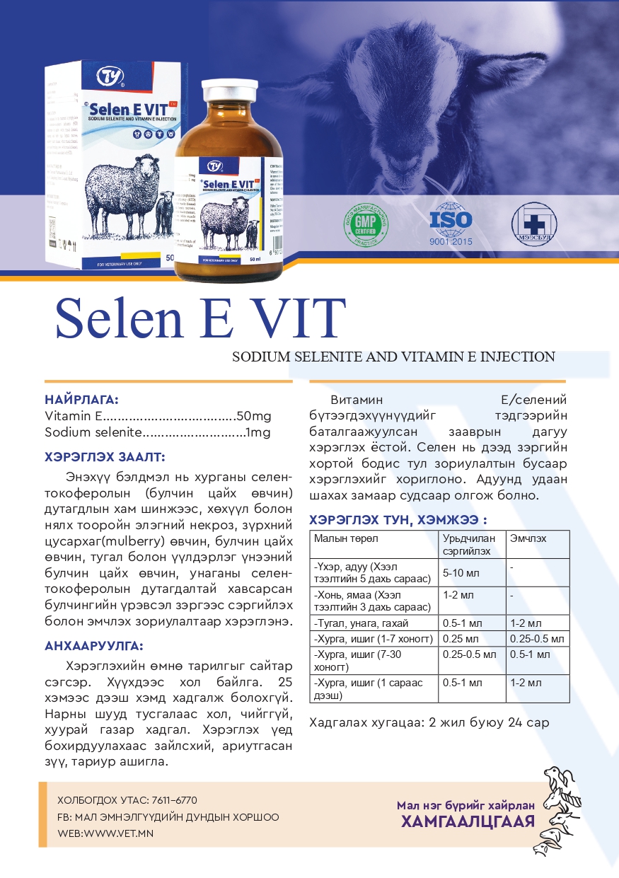 Селенит натри болон Витамин Е тарилгын шингэнийг
